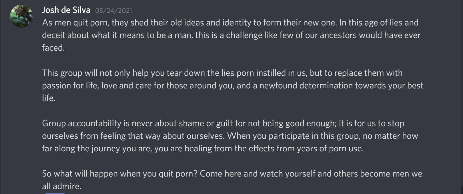 It comes with dedicated quit-porn training incorporated in the group’s Discord channels.